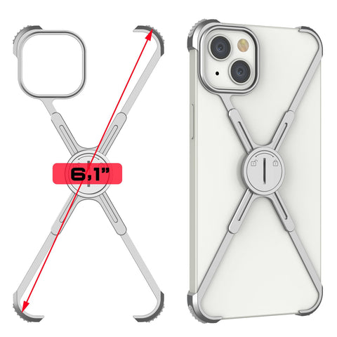 Punkcase iPhone 14 Bumper Case [Backbone Series] Ultra Slim Minimalist Aluminum Metal X-Frame Cover for iPhone 14 (2022) (6.1") [Silver]