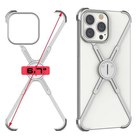 Punkcase iPhone 14 Pro Max Bumper Case [Backbone Series] Ultra Slim Minimalist Aluminum Metal X-Frame Cover for iPhone 14 Pro Max (2022) (6.7") [Silver]