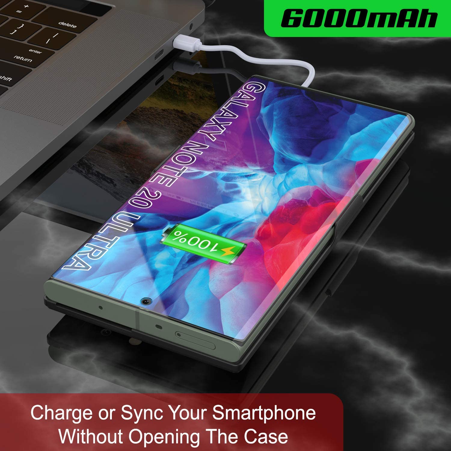 - ★ HIGH CAPACITY 6000mAh RECHARGEABLE LITHIUM BATTERY: Extend your battery life by 120% | IntelSwitch Technology: When recharging your battery case your Note 20 Ultra will be charged FIRST - Once completed the case will automatically switch to charge the battery case | 3 LED Indicator Lights: Know exactly how much charge is left | 10 Built-in Safety Mechanisms to prevent your Galaxy Note 20 Ultra charging case from overheating and short-circuits | UL_2056 SAFETY CERTIFIED