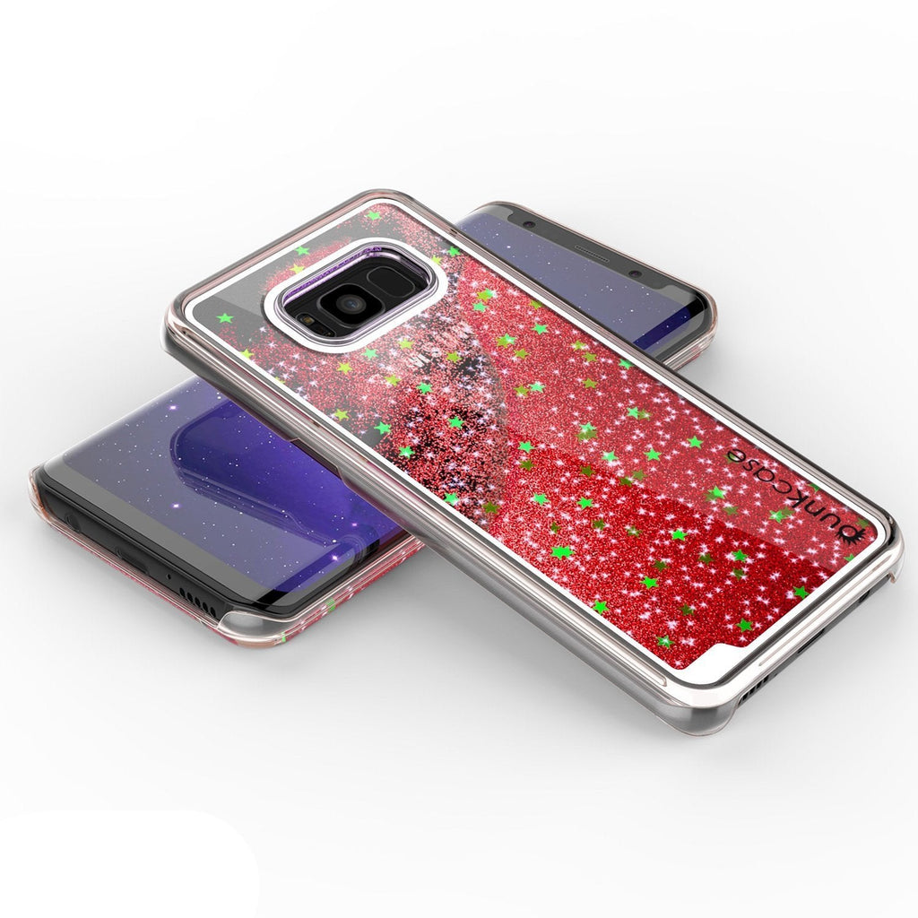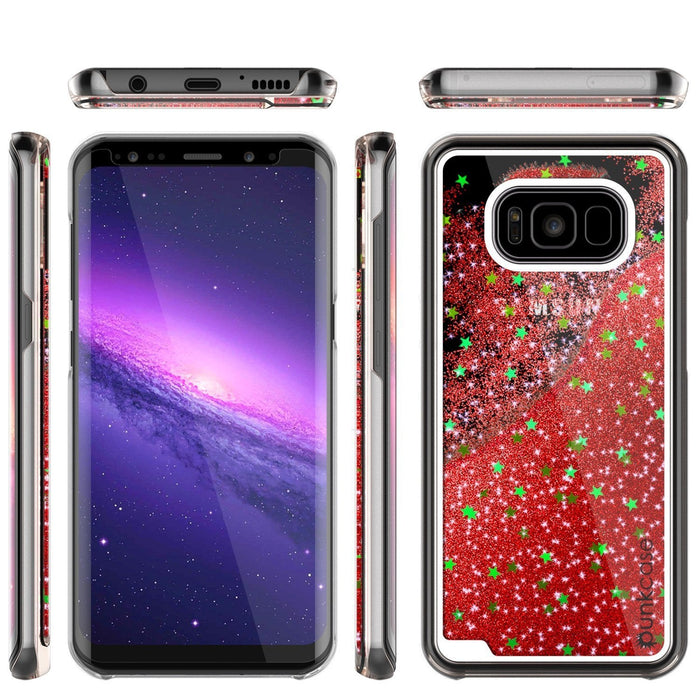 Galaxy S8 Case, Punkcase [Liquid Series] Protective Dual Layer Floating Glitter Cover with lots of Bling & Sparkle + PunkShield Screen Protector for Samsung S8 [Red]