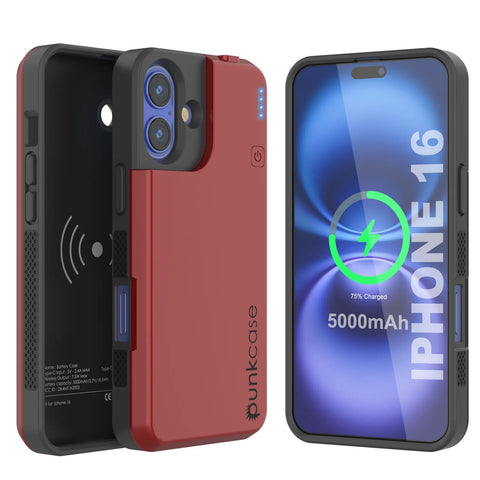 punkcaseiPhone 16 Battery Case, PunkJuice 5000mAH Fast Charging MagSafe Power Bank W/ Screen Protector | [Red]