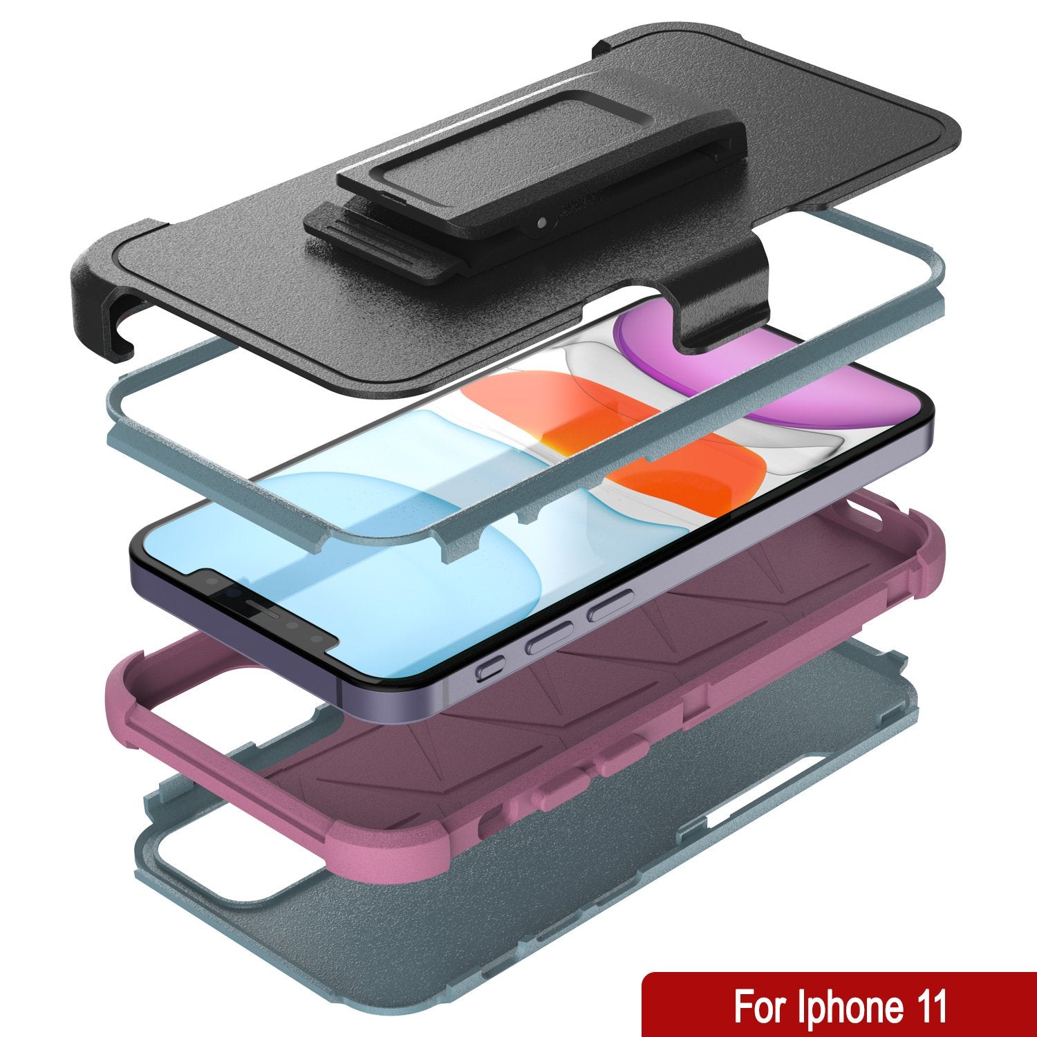 Punkcase for iPhone 11 Belt Clip Holster Case [Patron Series] 4-1 Rugged & Protective Multilayer Phone Cover W/Integrated Kickstand for iPhone 11 (5.8") (2019) [Mint-Pink]