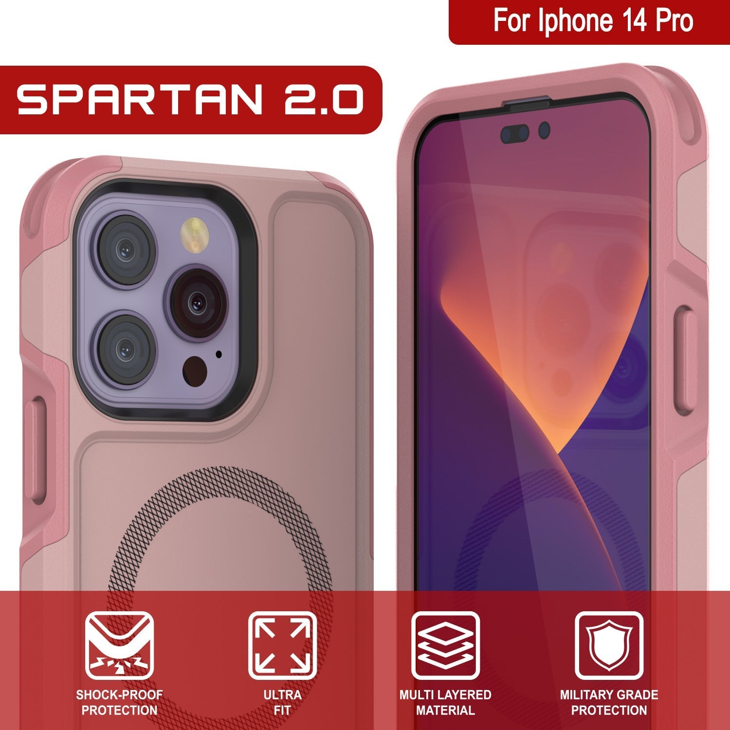 PunkCasePunkCase iPhone 14 Pro Case, [Spartan 2.0 Series] Clear Rugged Heavy Duty Cover W/Built in Screen Protector [Pink]PunkCase for iPhone 14 Pro Case [Spartan 2.0 Series] Clear Rugged Heavy Duty Cover W/Tempered Glass Screen Protector | Ultra Slim 360 Full Body Protection for iPhone 14 Pro (2022) (6.1")