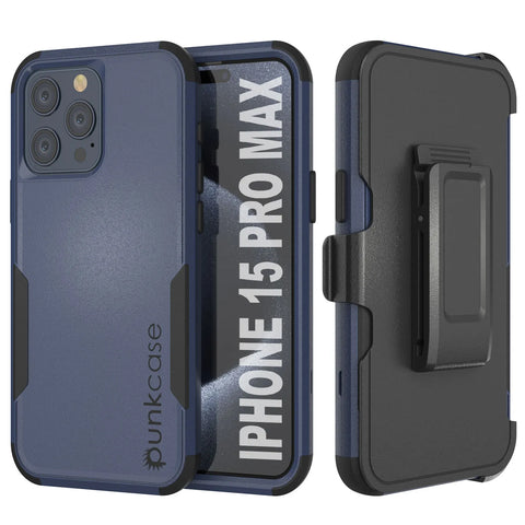 Punkcase for iPhone 15 Pro Max Belt Clip Holster Case [Patron Series] 4-1 Rugged & Protective Multilayer Phone Cover W/Integrated Kickstand for iPhone 15 Pro Max (6.7") (2023) [Navy Black]